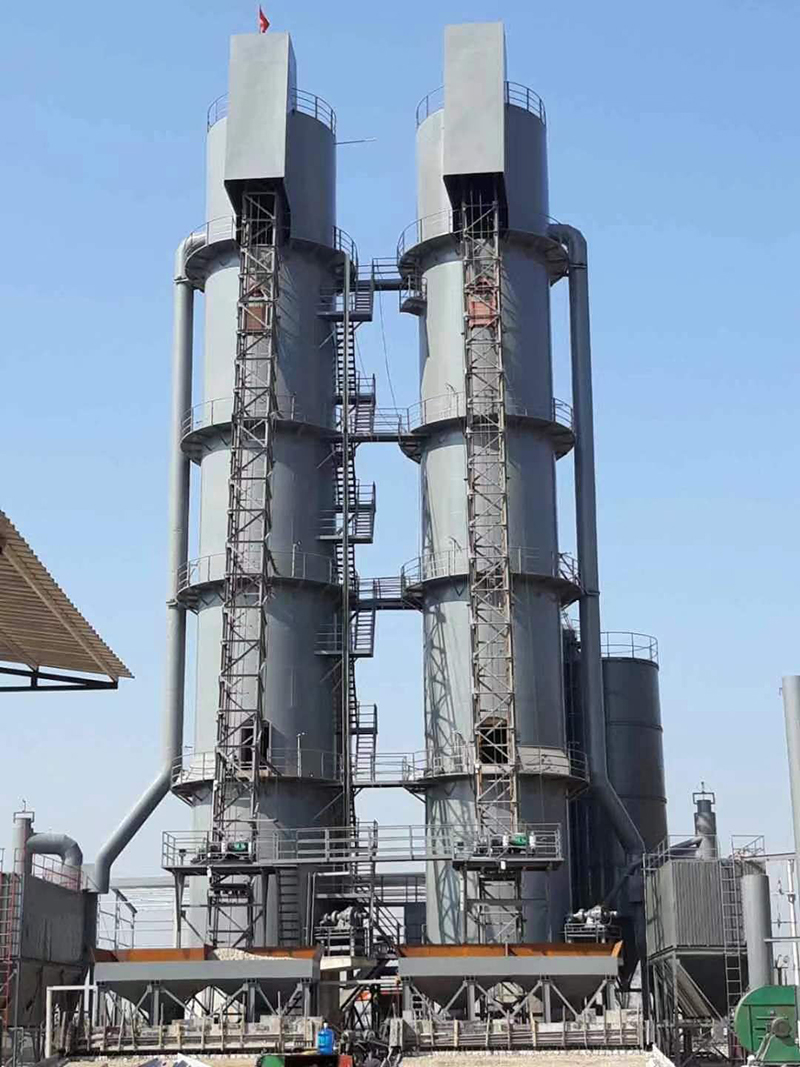 石灰窯設備主要由窯體、上料裝置、布料裝置、燃燒裝置、卸灰裝置、電器、儀表控制裝置、除塵裝置等組成。它的上料,配料、供風、供氣、卸灰都是通過電腦自動化控制完成。是具有環保、節能功能和機械化 、自動化程度較高的現代化石灰窯。它因采用了現代技術,所以它能充分利用廉價能源,特別能利用原來對環境有污染的氣體作主要能源,變廢為寶。